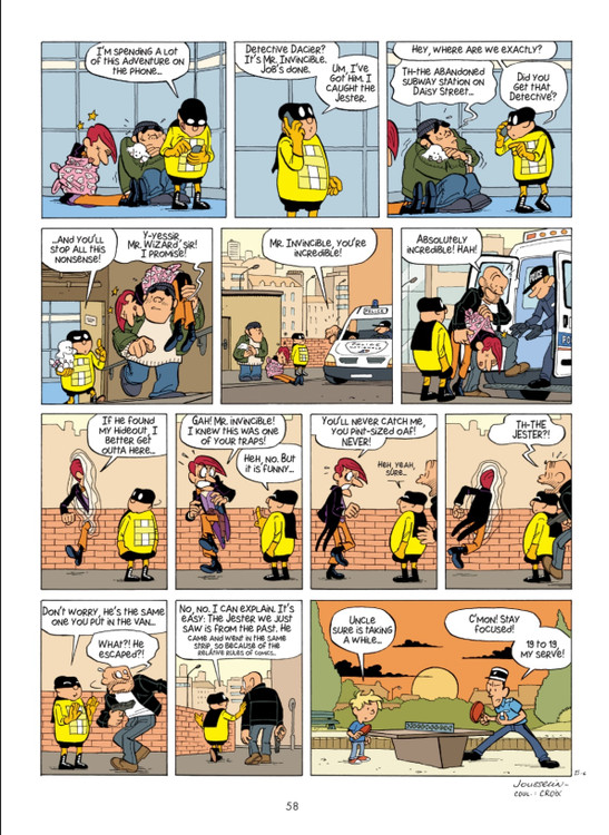 مستر اینوینسیبل با قدرتی عجیب و منحصربهفرد، میتواند از طریق پنلهای کمیک سفر کند، زمان را خم کند و با منطق تصویری بازی کند. در این شماره، او درگیر مأموریتی میشود که هم شامل مبارزه با تهدیدهای شهری است و هم خرید سبزیجات تازه! داستانها کوتاه، طنزآمیز و پر از خلاقیتهای بصری هستند که هم کودکان را سرگرم میکنند و هم بزرگترها را شگفتزده.
